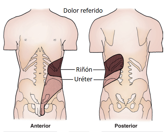- Cuadro clínico caracterizado por dolor lumbar de inicio agudo, de intensidad fluctuante, con irradiación anterior hacia el flanco y descendente hacia la fosa iliaca y los genitales acompañado por manifestaciones como sudoración, náuseas, vómitos o alteraciones de la motilidad intestinal resultantes de la estimulación vagal; por las características del dolor y su intensidad, ocasiona en el paciente un estado de angustia, inquietud y desasosiego.