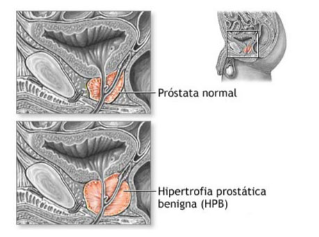 - La Hiperplasia Prostática Benigna (HPB) o adenoma prostático, es un proceso normal, que le sucede a prácticamente todos los hombres a medida que van envejeciendo. Si bien este crecimiento no es malo, puede producir ciertas molestias asociadas, que se derivan de la repercusión obstructiva que ello genera a nivel de la uretra. Entre los síntomas más habituales de la HPB están los relativos a la obstrucción misma: chorro de orina más fino y débil, menos fuerza en la micción, orinar más prolongado, y goteo al terminar. Por otra parte, producto de esa misma obstrucción que sufre la vejiga al tener dificultad para vaciar, ésta desarrolla un fenómeno irritativo que incide en un aumento de la frecuencia, urgencia en la micción y necesidad de levantarse en la noche a orinar.