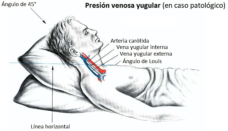 - El reflujo hepatoyugular se explora ejerciendo presión firme (10-15 segundos) sobre el centro del abdomen del paciente reflujo hepatoyugular; se considera positivo (indica fallo del VD) si la presión venosa yugular se eleva durante la compresión.