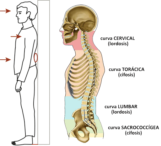 - Explore las curvaturas naturales de la columna sobre una superficie plana (contra la pared) y/o en decubito lateral.Pidale al paciente que se ponga de pie en forma derecha contra la pared