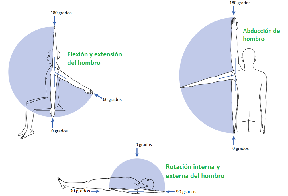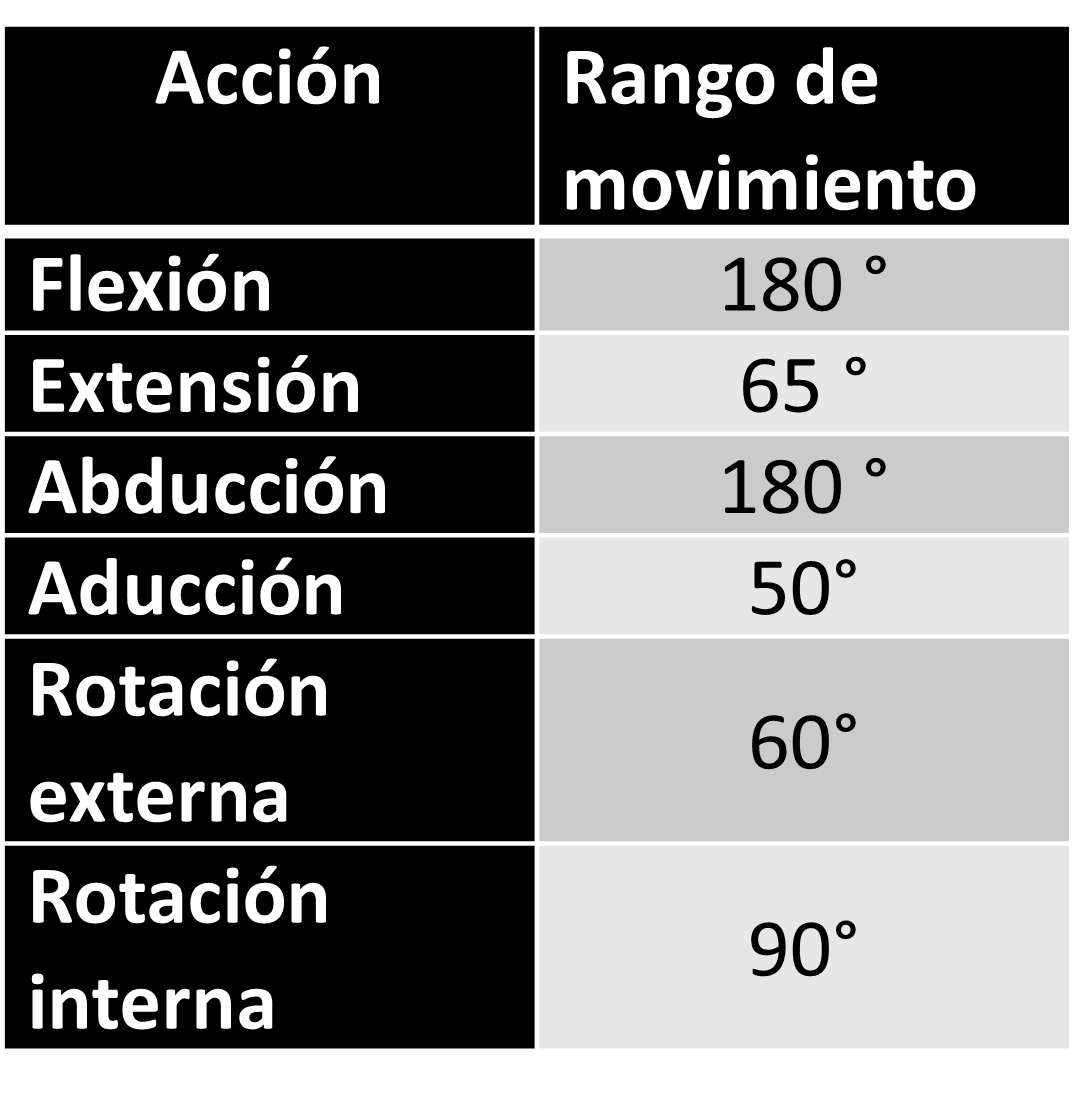 - Los rangos de movimiento del hombro en la siguiente tabla