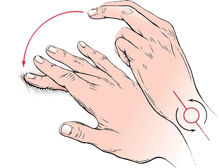 - Movimientos: la palpación permite detectar distintas variedades de movimientos. Los más importantes son: