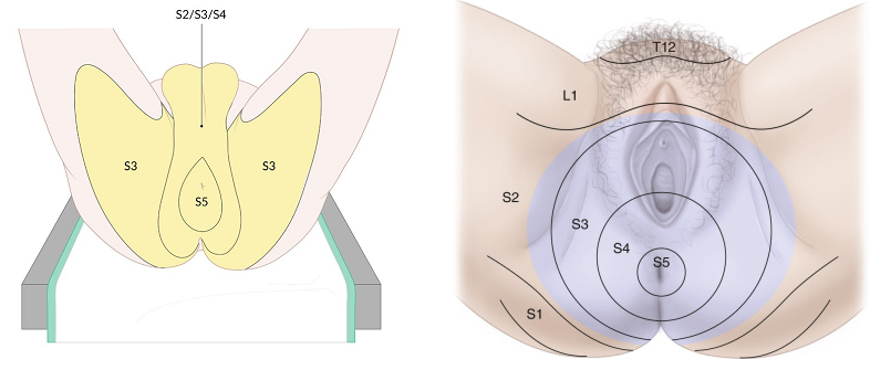 - Las lesiones de la columna lumbar pueden dañar el cono medular, la cauda equina o ambos. El síndrome de cola de caballo es la compresión de las raíces nerviosas por debajo de la terminación de la médula espinal. La disfunción de la raíz nerviosa se debe a la compresión directa de las estructuras circundantes. Las causas importantes incluyen trauma agudo; enfermedad ósea degenerativa crónica con retropulsión de fragmentos en el canal espinal; enfermedad del disco lumbar; infecciones como abscesos; tumor intraespinal y meníngeo; y hematoma intraespinal. Este síndrome puede ser una complicación rara de los procedimientos espinales menores y mayores. El síndrome de cauda equina generalmente se desarrolla como un proceso crónico insidioso a menos que se deba a un traumatismo agudo. Los síntomas pueden incluir dolor de espalda, dolor en las piernas, debilidad y calambres en las piernas. Los síntomas sensoriales pueden ser pérdida sensorial (anestesia en silla de montar) y dolor neuropático. La alteración del esfínter es común, especialmente con la progresión.