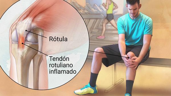 La anamnesis característica de la tendinitis rotuliana consiste en dolor en la cara anterior de la rodilla de inicio insidioso, localizado en la zona de afectación, que se desarrolla durante o poco después de las actividades repetitivas de carrera o salto.