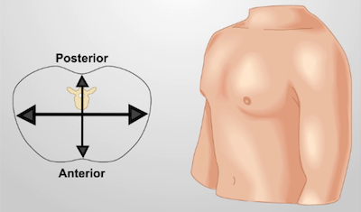 - Tórax de aspecto normal, o en tonel si presenta enfisema asociado. Tórax en tonel se refiere a un aumento en el diámetro antero-posterior del pecho semejando la forma de un barril, más comúnmente asociado con enfisema (EPOC).