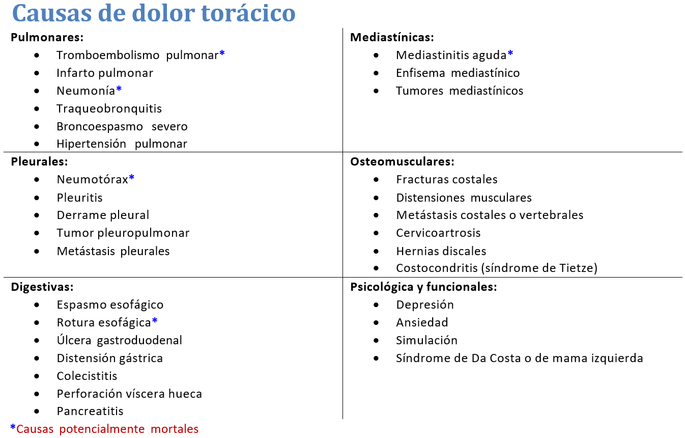 El dolor es un síntoma que mueve al afectado a consultar rápidamente al médico, y cuando se presenta en el tórax, produce alarma porque el paciente lo atribuye con frecuencia al pulmón o al corazón. El pulmón en sí mismo carece de inervación sensitiva, de manera que lesiones pulmonares, aunque sean graves, no presentarán dolor mientras no comprometan estructuras vecinas sensibles. Durante el proceso de la exploración clínica, determinaremos que otras estructuras torácicas pueden ser fuente de dolor, identificable a través de las características del síntoma, su relación con la respiración, tos y movimientos del tronco y por signos concomitantes del examen físico.