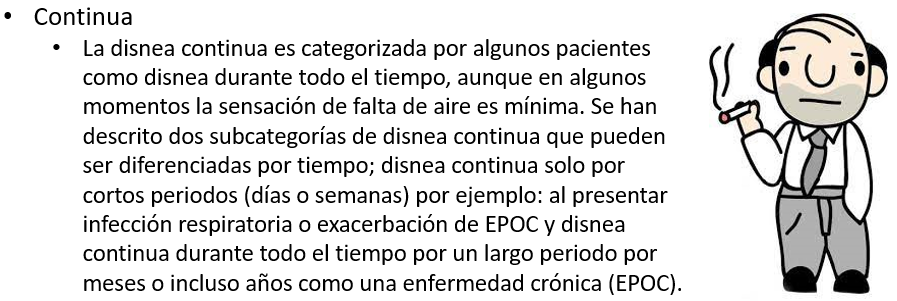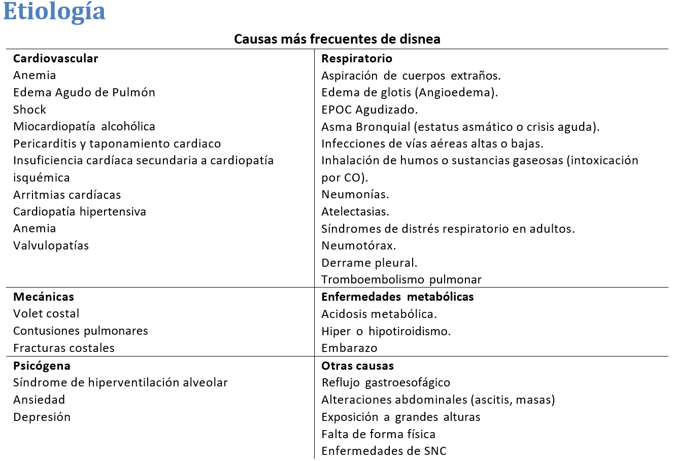 - La disnea es la sensación de dificultad respiratoria, es decir, la sensación subjetiva de “falta de aire” o “sofocación” que depende de la capacidad de percepción del paciente y que puede o no asociarse a signos objetivos (cianosis, taquipnea, taquicardia, utilización de los músculos respiratorios accesorios, etc.).
