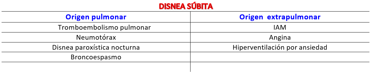 - Su origen es multifactorial, pudiendo intervenir factores fisiológicos, psíquicos, sociales y medioambientales del sujeto. La disnea se clasifica según su presentación como súbita, aguda inicio de los síntomas en horas a días y la disnea crónica se presenta con síntomas de más de 3 semanas de evolución. En la parte clínica, es importante diferenciar en primer lugar si la disnea es de origen respiratorio o cardiaco. Tipos de disnea: