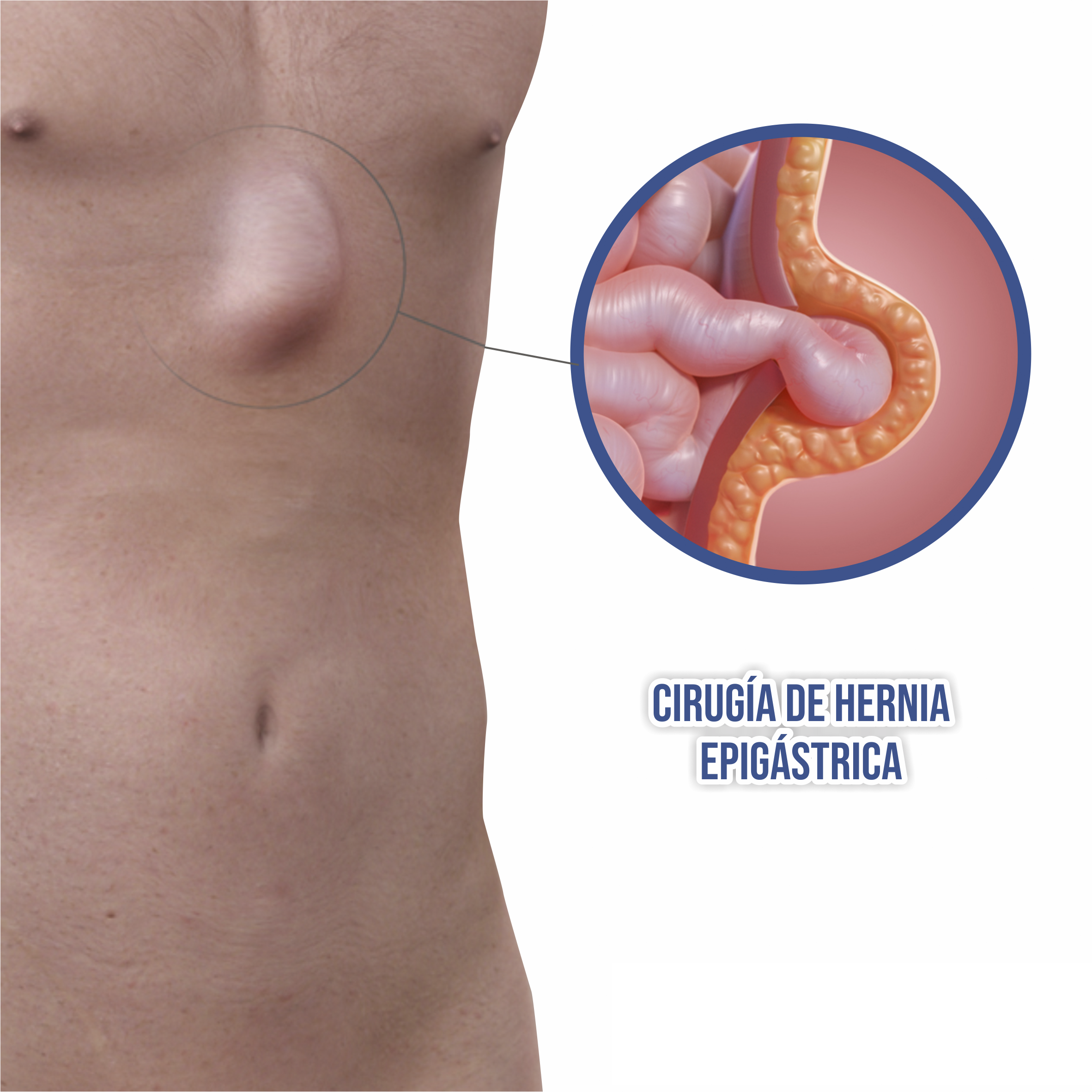 - Es un defecto en la pared abdominal que se sitúa por encima del ombligo, se encuentra en la región epigástrica de la pared abdominal, arriba del ombligo y justamente debajo del esternón. Este tipo de hernia es una condición muy común en adultos y niños. Cerca del 2% al 3% de las hernias ubicadas en el abdomen, son hernias epigástricas. La mayoría de las veces, no se sienten síntomas o se sienten mínimamente.