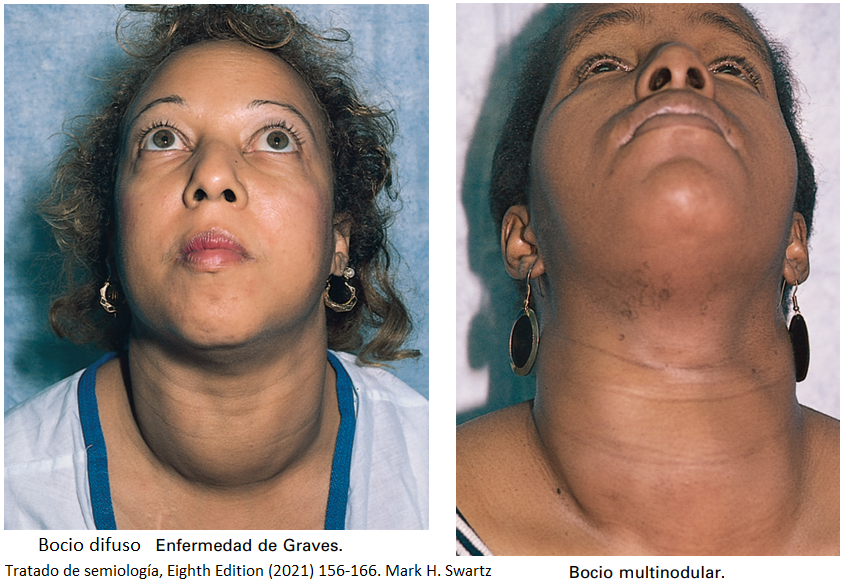 - La glándula debe elevarse ligeramente con la deglución, tener consistencia flexible y firme. Es anormal palparla agrandada. Una tiroides aumentada de tamaño se puede asociar a hipertiroidismo, hipotiroidismo o a un bocio simple o multinodular con un funcionamiento normal. Cuando está aumentada de tamaño auscultaremos con el estetoscopio para detectar ruidos vasculares.