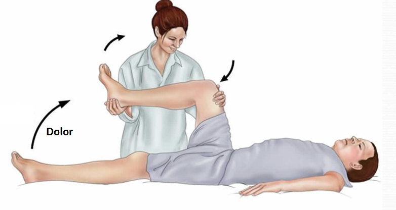 - Signo de Kérnig: colocar al paciente en decúbito supino. Flexionar los miembros inferiores del paciente a 90° desde la cadera y luego intentar extenderlos en la rodilla. El signo es positivo si la contracción refleja de los músculos imposibilita la extensión de la rodilla causando resistencia y dolor. El signo de Kérnig es bilateral (en contraste con el signo de Lasègue en la ciática). La sensibilidad de los signos meníngeos en la detección de la meningitis es muy baja en lactantes y en ancianos.