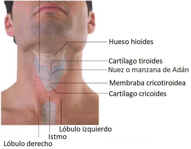 - Para una buena palpación debemos identificar previamente el cartílago tiroides, cricoides y la tráquea. Pedimos al paciente que degluta un poco de agua y observamos como cartílago tiroides, cricoides y glándula tiroidea se elevan con la deglución y luego regresan a su posición. Con esta maniobra observamos la simetría.