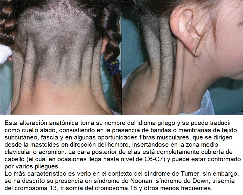 - Ejemplos de diagnóstico diferencial: La longitud y anchura del cuello puede orientarnos sobre la patología: cuello alto y delgado (asténicos); cuello con aletas laterales -pterigium colli- (agenesia gonadal, Sd. de Turner); cuello de búfalo -giba dorsal- (Sd. de Cushing, Lipodistrofia causada por fármacos inhibidores de la proteasa viral).