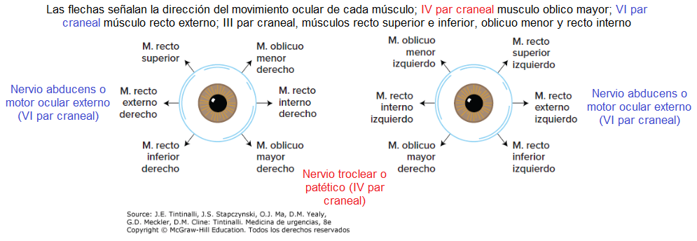 - Estos tres nervios craneales (III, IV y VI), se localizan en la fisura orbitaria superior, actúan de manera conjunta para controlar los movimientos extraoculares. El nervio motor ocular común controla las reacciones pupilares, la elevación del párpado superior y la mayor parte de los movimientos extraoculares.