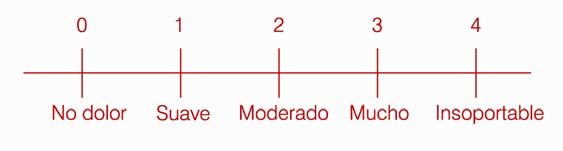 - Escala Verbal Simple: Esta escala clasifica el dolor en categorías como "sin dolor", "algo de dolor (leve)", "mucho dolor (moderado)" y "muchísimo dolor (grave)". Es una forma más sencilla de describir la intensidad del dolor.