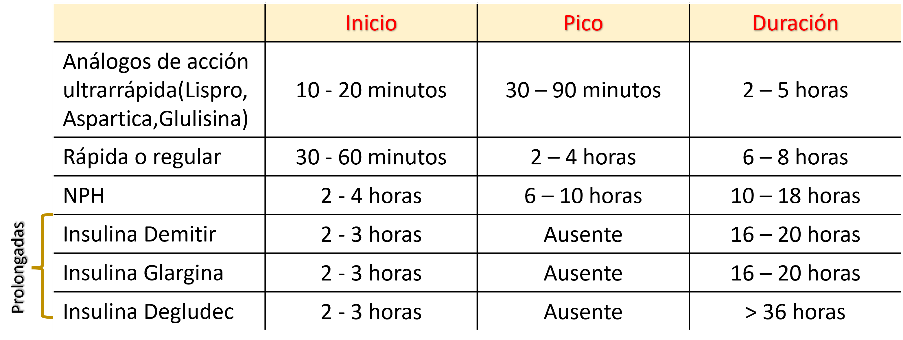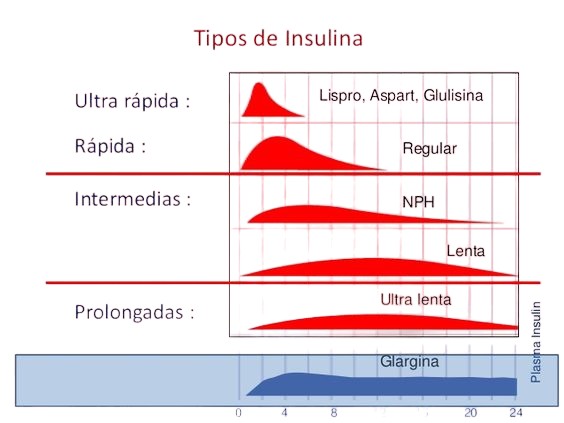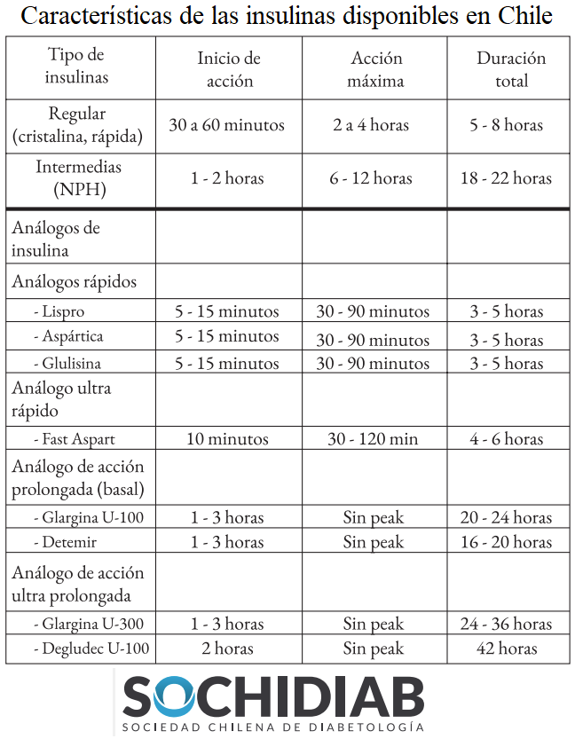 - Los distintos tipos de insulina disponibles en chile y su perfil de acción. Existen también insulinas bifásicas: mezclas con proporciones prefijadas de distintos tipos de insulina (rápida con NPH, análogos de acción rápida con NPH modificada).
