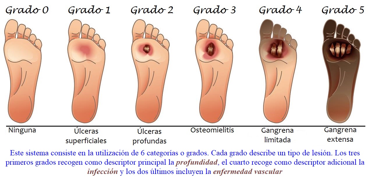 - Esta clasificación fue desarrollada en México a partir del estudio de 235 sujetos diabéticos y dada a conocer en el año 2010. Es una herramienta útil para el seguimiento y aporta un valor pronóstico de éxito o fallo de la cicatrización, lo que permite el ajuste del tratamiento seleccionado