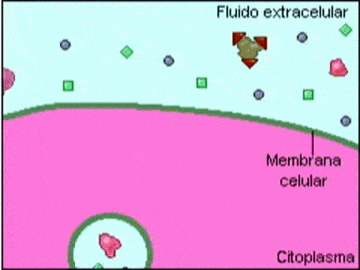- Pinocitosis: Consiste en la captación de material del espacio extracelular por invaginación de la membrana citoplasmática. Esta membrana se repliega creando un endosoma o vesícula pinocítica que se desprende hacia el interior celular con las moléculas disueltas o en suspensión en su interior