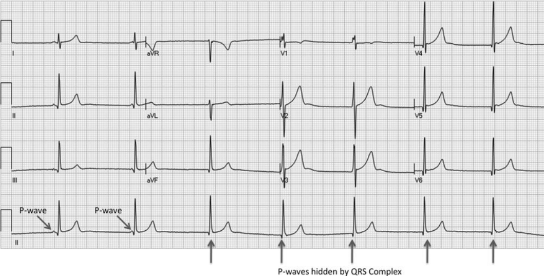 - Ondas P preceden a QRS.
