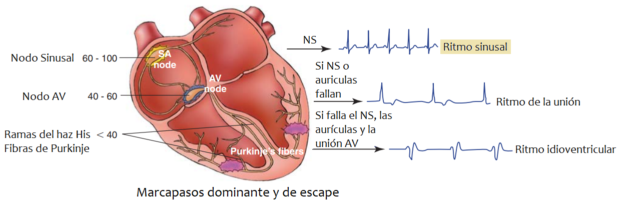 - La presencia de todos los criterios anteriores son fuertes indicativos de un ritmo cardíaco generado en el nodo sinusal y propagado por el sistema de conducción de manera normal. Cuando el único criterio que no está presente es una frecuencia cardíaca entre 60 y 100 latidos por minuto, hablamos de bradicardia sinusal (cuando la frecuencia cardíaca es menor a 60 lpm) o taquicardia sinusal (cuando es superior a 100 lpm)