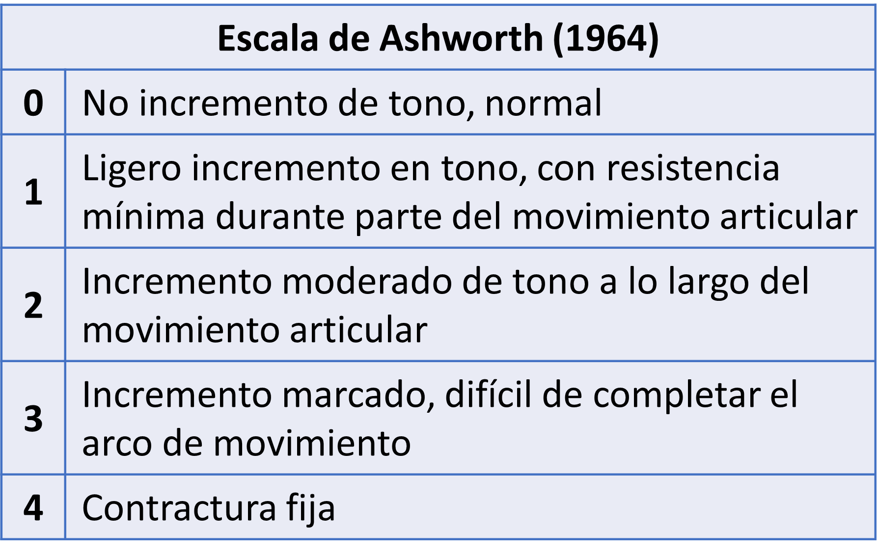 - Existen varios métodos para evaluar la espasticidad. La medida más utilizada para evaluar el tono muscular es la escala de Ashworth.