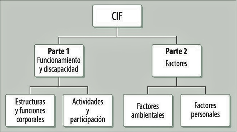 - La CIF tiene dos partes: la primera trata sobre funcionamiento y discapacidad (componente cuerpo y componente de sistemas corporales), la segunda acerca los factores contextuales (factores ambientales y factores personales).