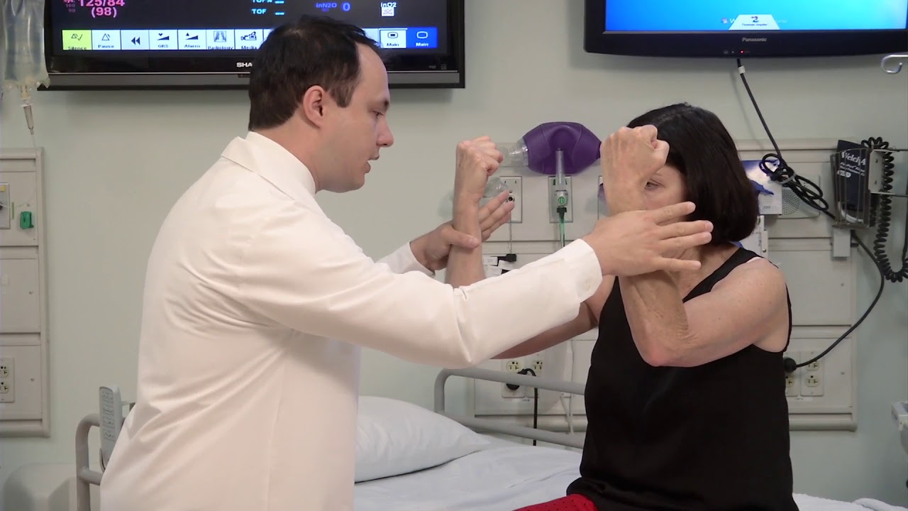 - En los pacientes con enfermedades del SNC se debe examinar la abducción y rotación interna del hombro, la extensión del carpo, la extensión de la rodilla con cadera en flexión de 90º, y la dorsiflexión del pie con rodilla en flexión de 90º.