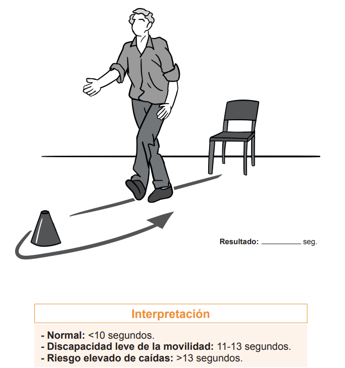 - En los pacientes con marcha independiente (con o sin ayudas de movilidad) existen diferentes pruebas para evaluar el equilibrio y la capacidad para caminar. Las pruebas Up and Go Test, levantarse y sentarse cinco veces, levantar un objeto del piso, marcha en tándem y mantener el equilibrio monopodal sirven para detectar los cambios en el tiempo de la función motriz gruesa y para establecer el riesgo de caídas.