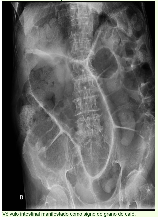 - Signo del grano de café: Cuando la causa es un vólvulo del sigmoides