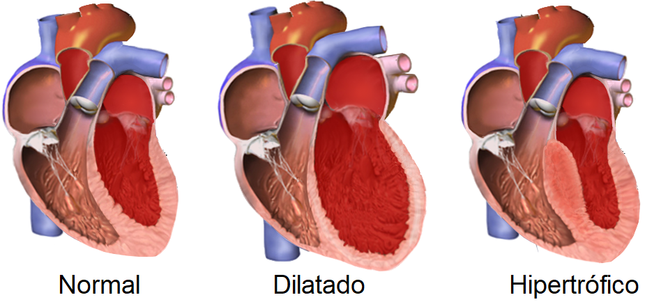 Cuando ocurre un aumento en la presión o un aumento en el volumen del ventrículo, se estimula una reacción de hipertrofia lo que mantiene una tensión constante. La geometría de la hipertrofia es dependiente del estímulo.