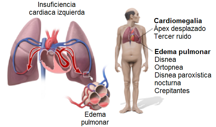 - Galope S3 en la auscultación cardíaca indicativa de presión telediastólica ventricular izquierda elevada