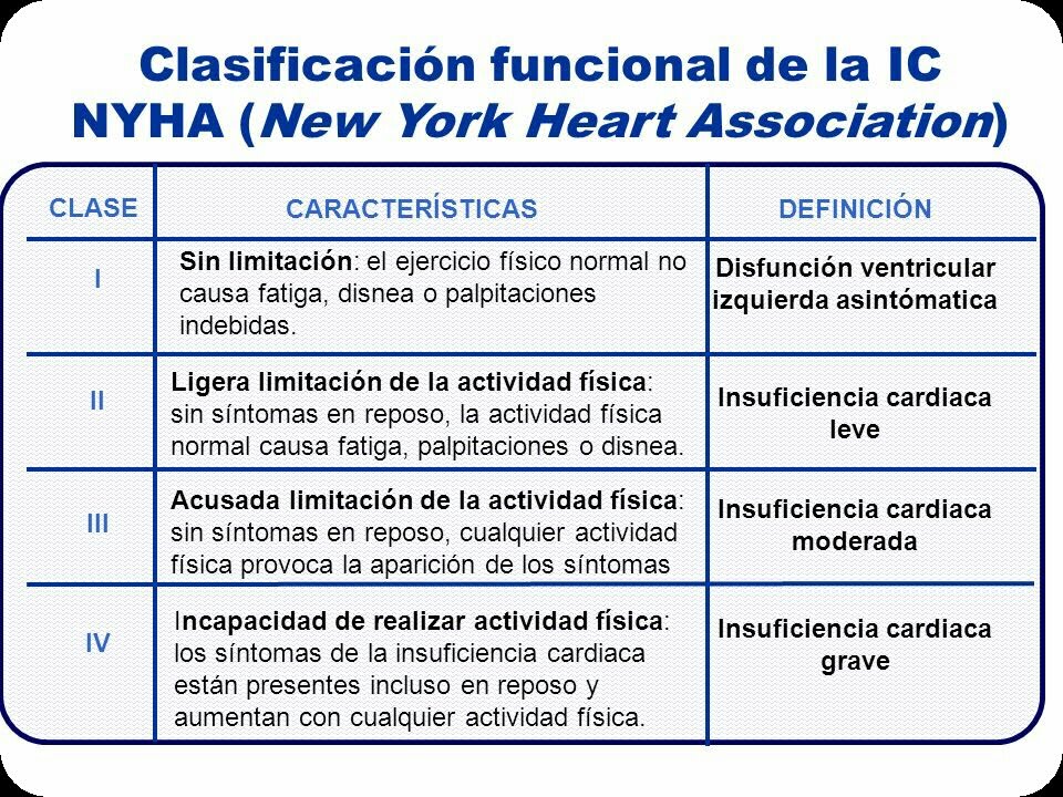 - La disnea es una sensación subjetiva, por lo que se intenta objetivar con la clasificación de capacidad funcional de la New York Heart Association (NYHA)