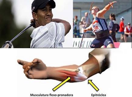 - Riesgo de la epicondilopatía medial (codo del golfista) son errores de entrenamiento, equipo defectuoso, actividades repetitivas que requieran flexión de la muñeca y pronación del antebrazo, y anomalías biomecánicas tales como fuerza escasa, desequilibrios de flexibilidad e inestabilidad articular.