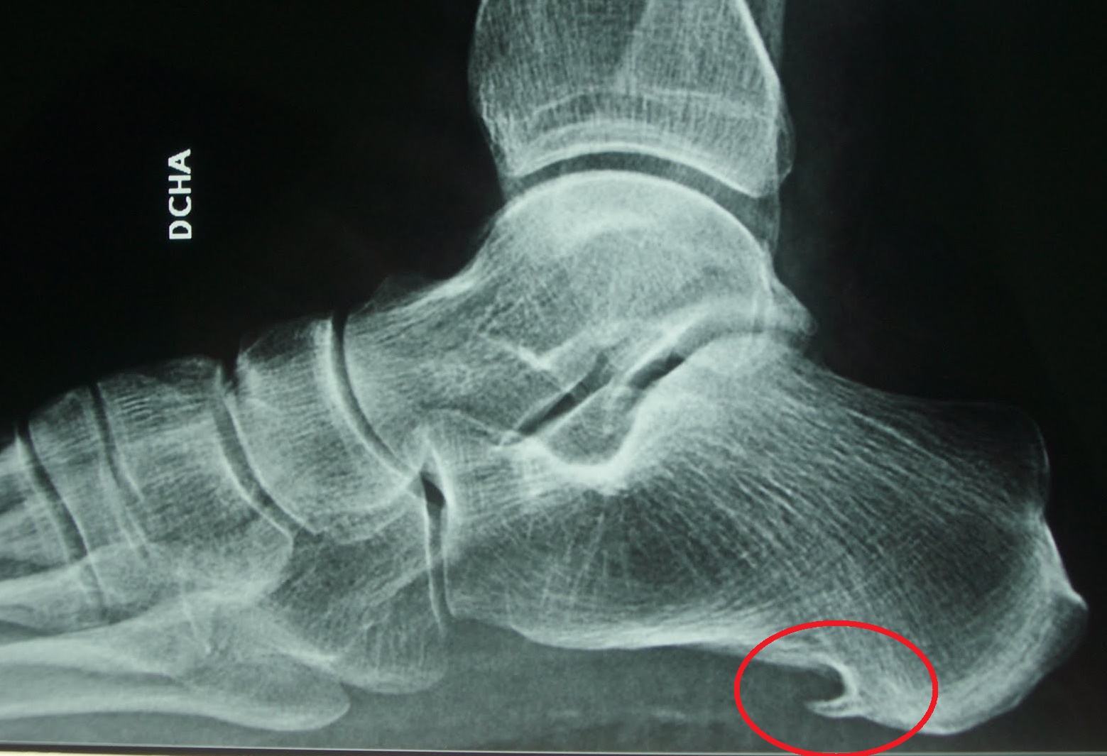 - Algunas veces, una radiografía muestra un espolón del hueso del calcaneo, a menudo se creía que estos espolones óseos eran responsables del dolor en el talón y se extirpaban quirúrgicamente. Sin embargo, muchas personas que tienen espolones óseos en los talones no tienen dolor.