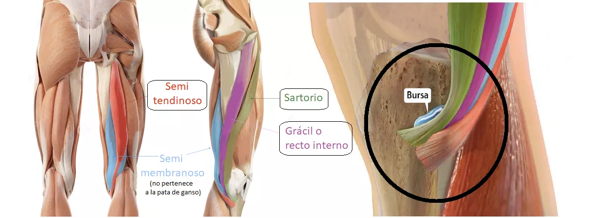 - Es un proceso inflamatorio del tendón de inserción de los músculos sartorio, recto interno (grácil), semitendinoso y, su bolsa sinovial. También conocida como tendinitis anserina, produciéndose principalmente en corredores de larga distancia y en mujeres de mediana edad y mayores con exceso de peso; se asocia frecuentemente con gonartrosis.