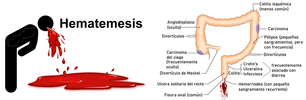- La hematemesis se caracteriza por la presencia de sangre visible en el vómito (hematemesis)